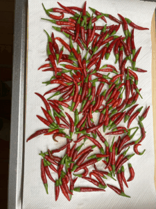 真っ赤に色づいたとうがらし達は、辛さもいい感じで収穫の幸せをかみしめたのでした。
